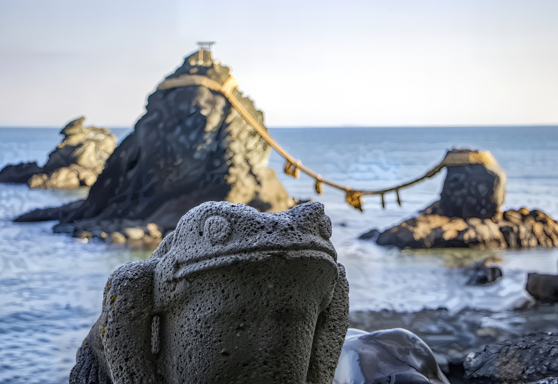 Marvel at the natural beauty of Ise Bay as we gaze upon Meoto Iwa