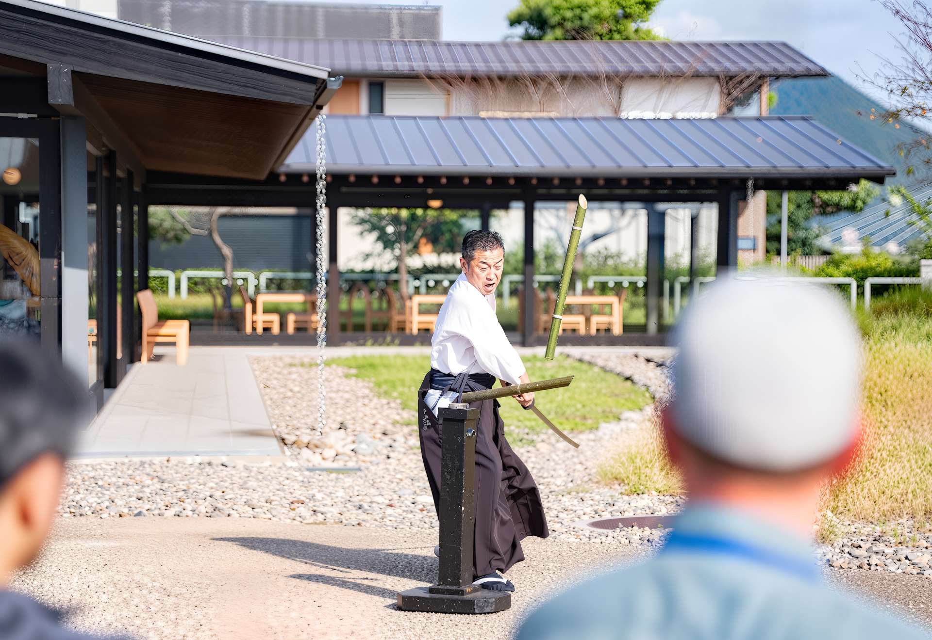 After a peaceful session of Zazen meditation on the grounds of the Ryutaiji Temple, with a prestigious and legendary history dating back to the year 1407 (the Muromachi Period), it's time for a change of pace as you watch a dynamic, powerful display of iai at the very same location. Watching the swift and deadly movements done with a real katana will definitely be something you won't forget!