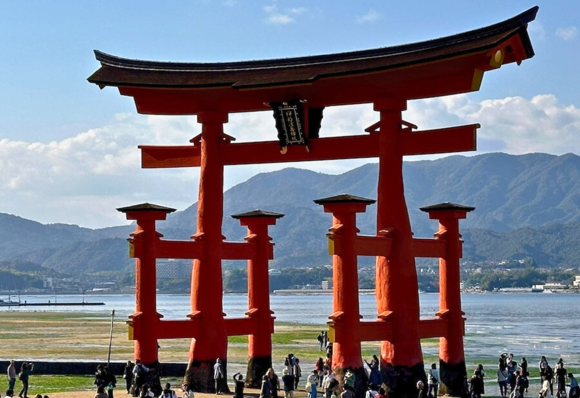 You will get there by ferry. You can contact wild deer on the way to Itsukushima shrine.