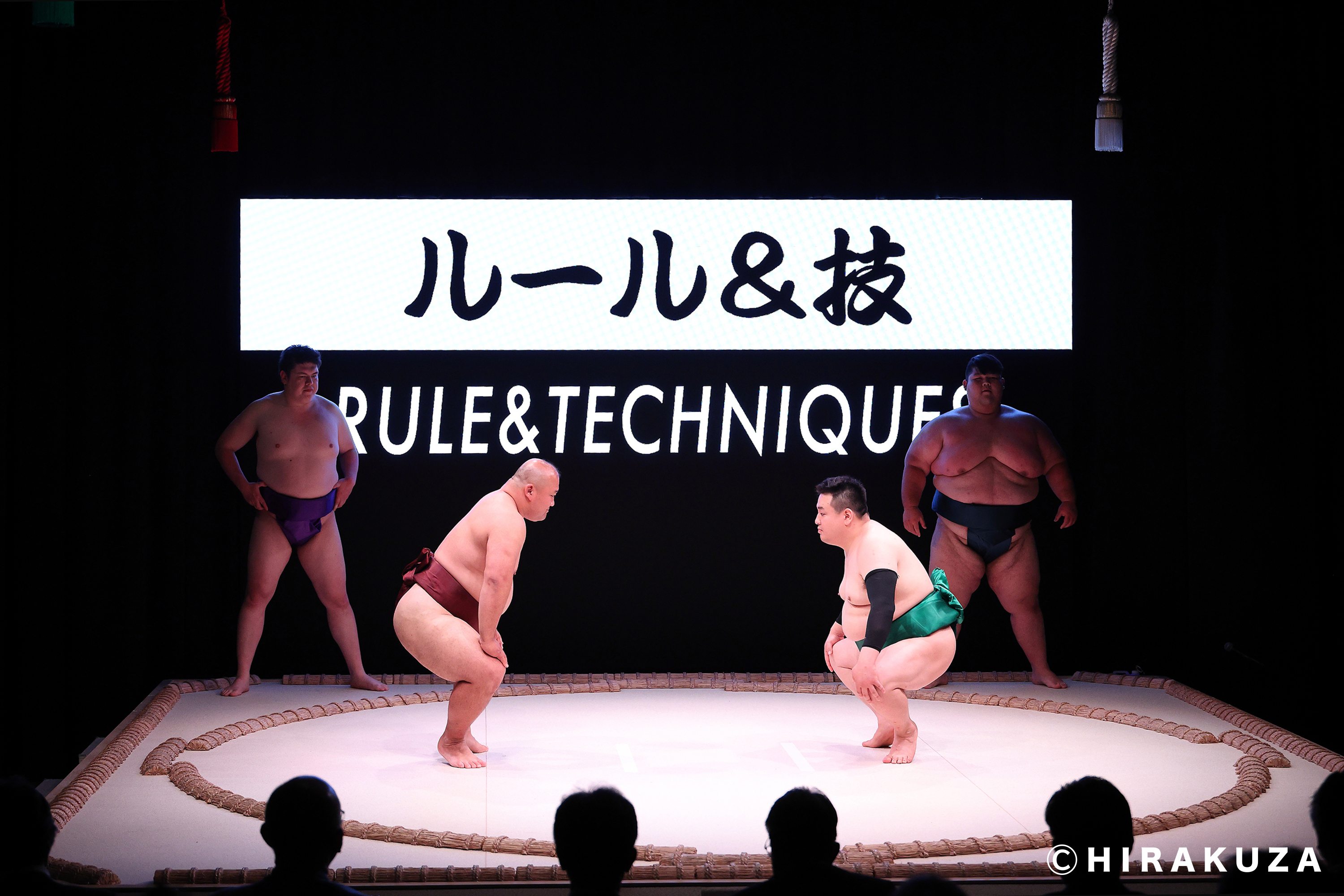 All performers are former Sumo wrestlers, and the stage (“dohyo” ) is actual size.