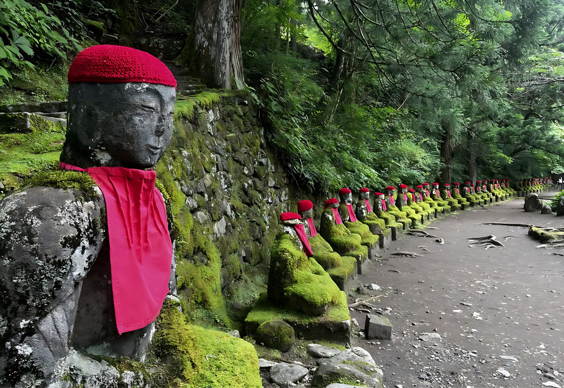 Walk through a gorge filled with ’Jizo’ statues and see a waterfall!