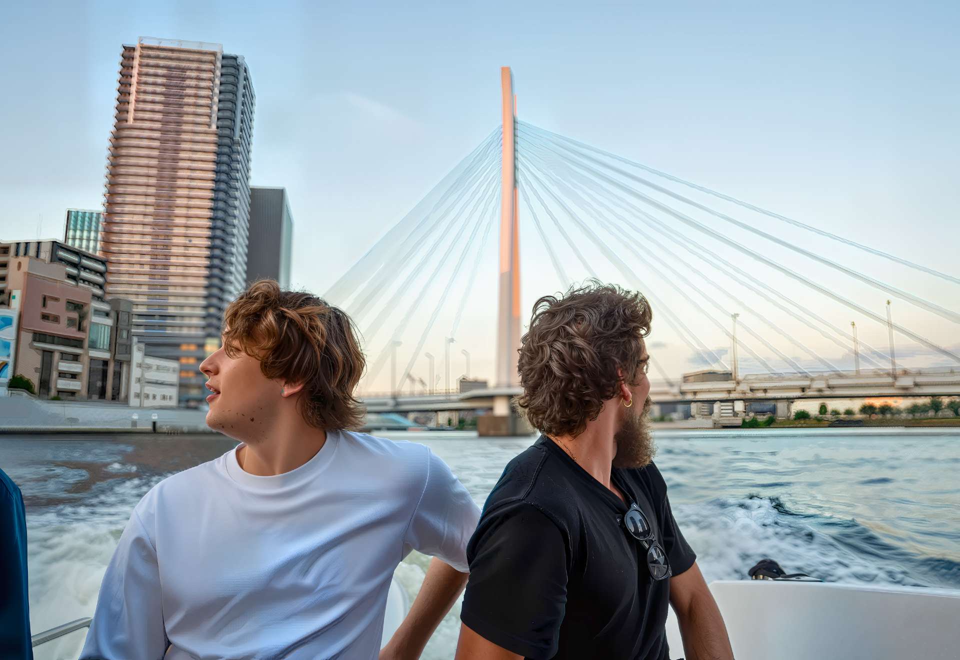 Set sail on a magical evening cruise as the city transforms from golden sunset to a dazzling nightscape! Glide along the Sumida River out toward Tokyo Bay, where you’ll be treated to panoramic views of futuristic Odaiba, the illuminated Rainbow Bridge, and the iconic Tokyo Tower. Capture unforgettable photos of the sparkling skyline while enjoying your handpicked food and drinks on deck. On the way back, relax and soak in the breathtaking city lights and beautifully lit bridges as your boat cruises through the heart of Tokyo. Return to the pier feeling amazed, fulfilled, and ready to treasure the memories of this unforgettable experience.