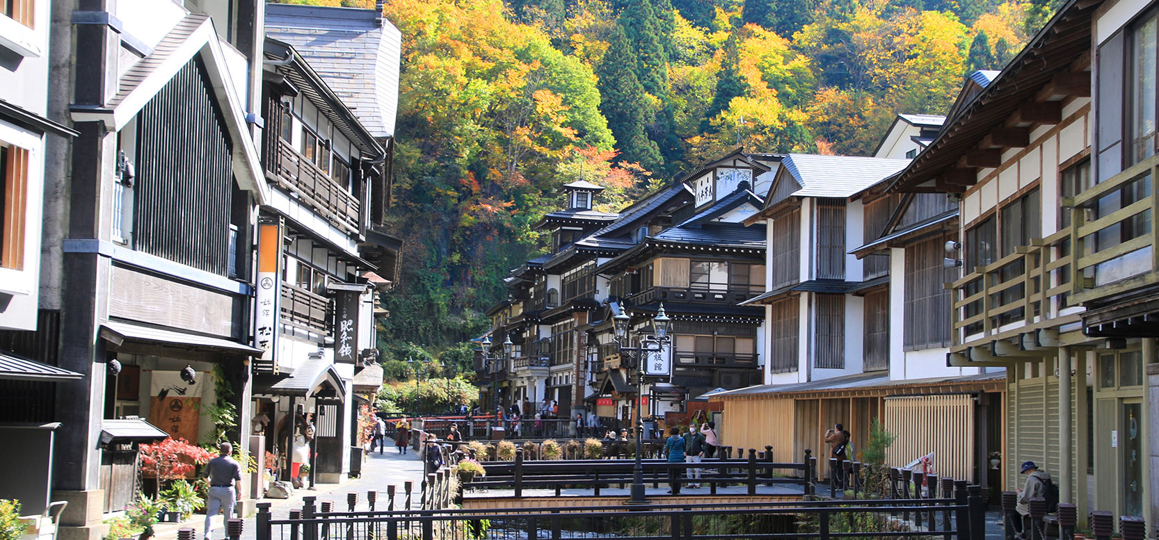 Ginzan Onsen is filled with a retro atmosphere where visitors can feel as if they've traveled back in time. This traditional hot spring town features wooden hot spring lodgings lining both banks of the Ginzan River, a townscape so scenic that a government ordinance has been passed to preserve it. Revel in the nostalgic atmosphere while enjoying a stroll around the hot spring town.