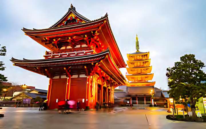 Senso-ji Temple in Asakusa, Tokyo, Japan – iconic Buddhist temple with giant red lantern, historic Kaminarimon Gate, and vibrant traditional culture