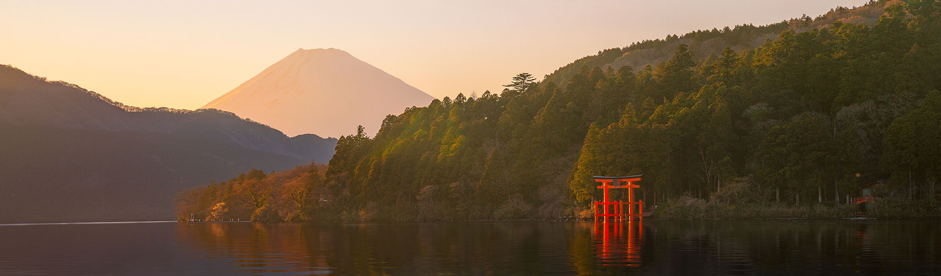 Lake Ashinoko (芦ノ湖, Ashinoko) was formed in the caldera of Mount Hakone after the volcano’s last eruption 3000 years ago. Today, the lake with Mount Fuji in the background is the symbol of Hakone. The lake’s shores are mostly undeveloped except for small towns in the east and north and a couple of lakeside resort hotels.