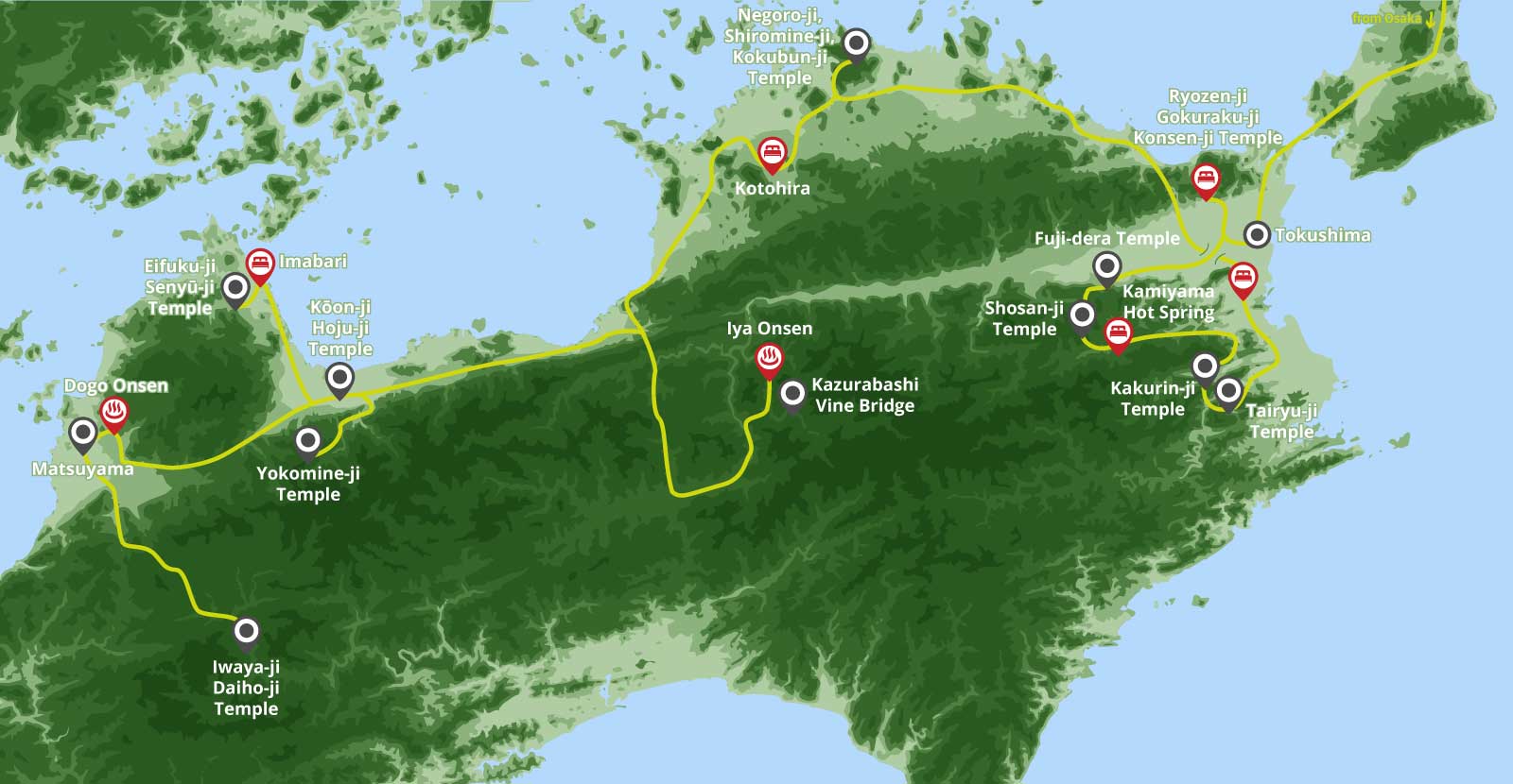 The walk can be shortened by 1.5 hours (5.4 km / 3.4 mi) by omitting the round-trip section to Temple 81, Shiromine-ji.