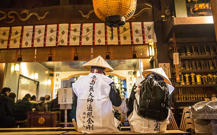 Head south by bus and pre-paid taxi from Matsuyama to Temple 45, Iwaya-ji, a temple closely linked to Kōbō Daishi, the priest who founded Shingon Buddhism and the temple settlement of Mount Kōya. Climb the iconic ladder to his meditation spot, with its spectacular views over the surrounding region. From Iwaya-ji Temple, enjoy a lovely forest hike to Temple 44, Daihō-ji, before returning by bus to Matsuyama in the evening. Overnight in Dōgo Onsen.