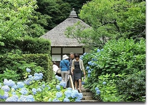 Meigetsuin Temple (明月院) is a temple of the Rinzai Zen Sect founded in 1160 in Kamakura. It is also known as Ajisaidera (“Hydrangea Temple”) because hydrangea bloom in abundance on the temple grounds during the rainy season around June. 95% of the hydrangea here are of the Hime Ajisai (“Princess Hydrangea”) variety; they are thus named because of their pretty blue colors.