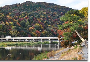 The Togetsukyo Bridge is Arashiyama’s well known, central landmark. Many small shops, restaurants and other attractions are found nearby, including Tenryuji Temple, Arashiyama’s famous bamboo groves and pleasure boats that are available for rent on the river.