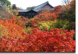 Tofukuji (東福寺, Tōfukuji) is a large Zen temple in southeastern Kyoto that is particularly famous for its spectacular autumn colors. The temple was founded in 1236 at the behest of the powerful Fujiwara clan. Its name is a combination of the names of two great temples in Nara that were also associated with the Fujiwara, Todaiji Temple and Kofukuji Temple. Tofukuji has historically been one of the principal Zen temples in Kyoto, and is a head temple of one of the schools of the Rinzai sect of Zen Buddhism.