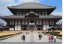 Todaiji’s main hall, the Daibutsuden (Big Buddha Hall) is the world’s largest wooden building, despite the fact that the present reconstruction of 1692 is only two thirds of the original temple hall’s size. The massive building houses one of Japan’s largest bronze statues of Buddha (Daibutsu). The 15 meters tall, seated Buddha represents Vairocana and is flanked by two Bodhisattvas.